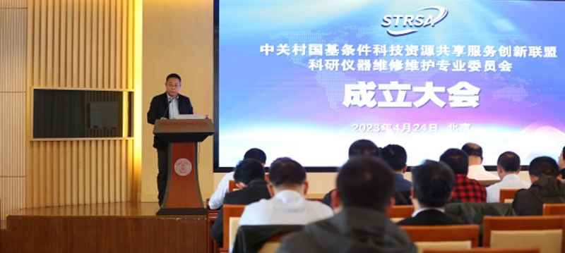 2023年4月24日,中关村国基条件科技资源共享服务创新联盟科研仪器维修维护专业委员会(以下简称科研仪器维修维护专委会)成立大会在京召开。国家科技基础条件平台中心主任苏靖出席大会并讲话。
